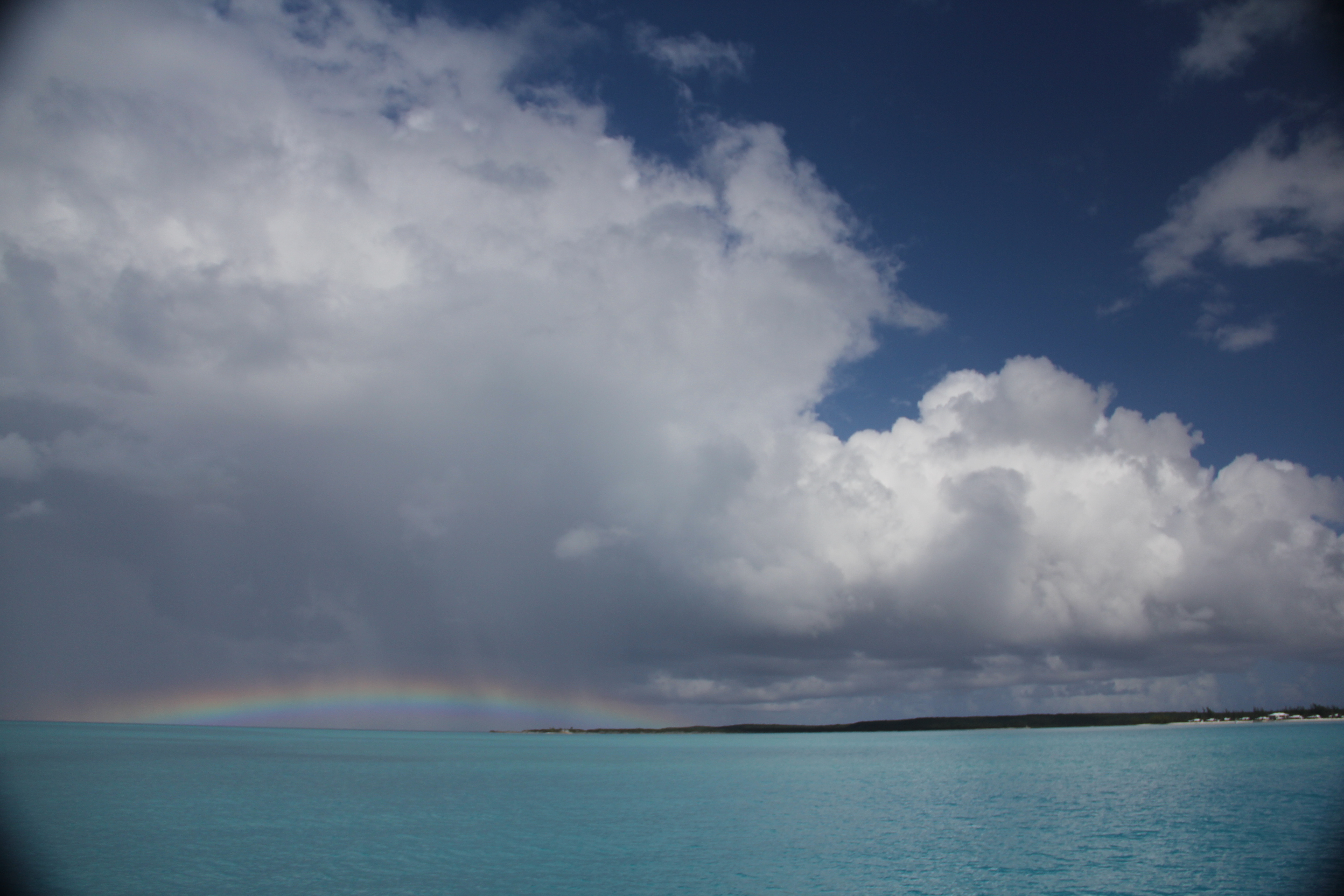 Traversing the Gulf Stream which is called the largest river in the world is a challenge. A fun challenge. We buddy boated across with a Canadian boat, Bikini. We would end up spending the next 6 weeks with them having a ball. The Bahamas have amazing turquoise water, numerous rainbows and fluffy white beaches. As we sailed the 200 miles we would stop at different bays to anchor for the night.