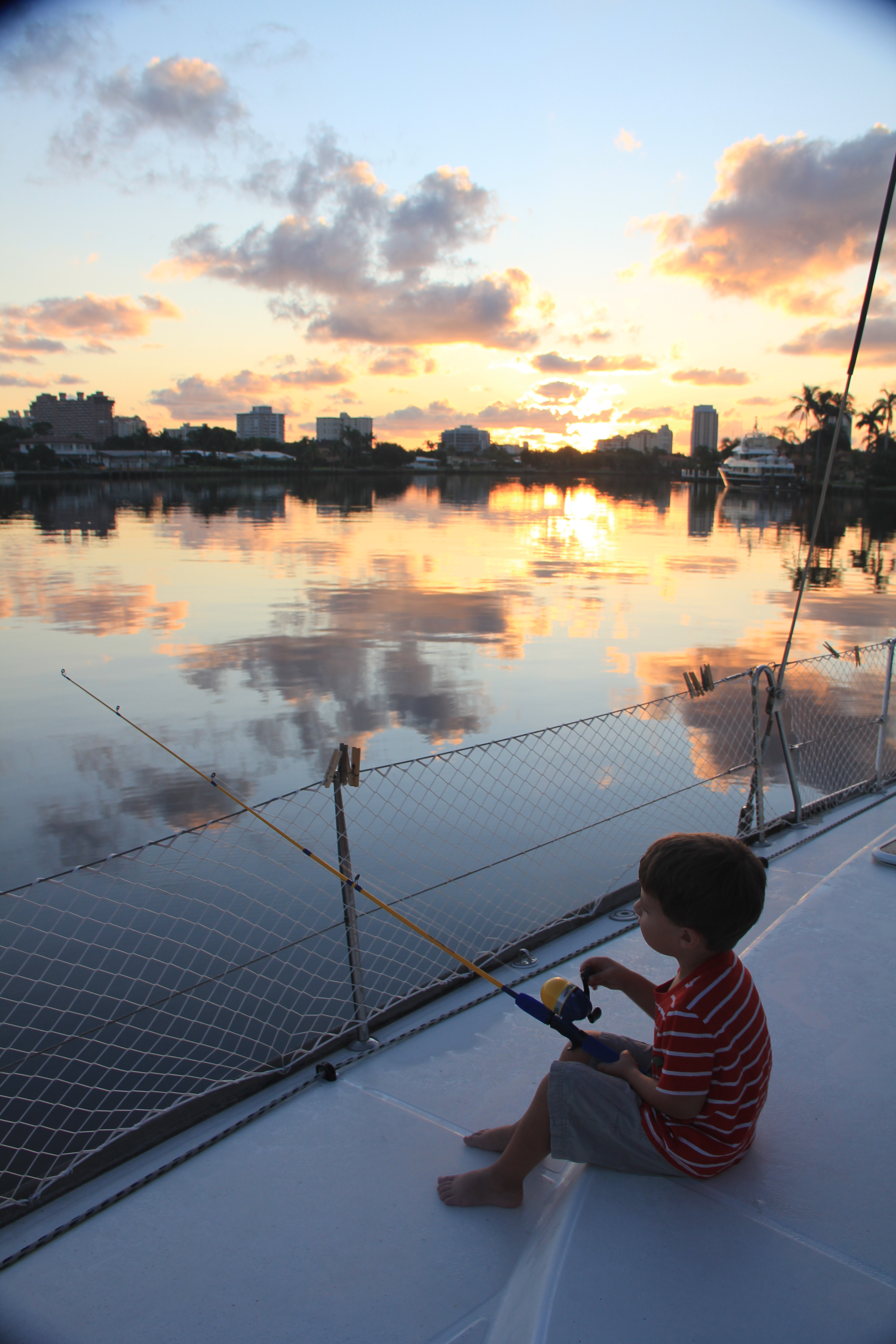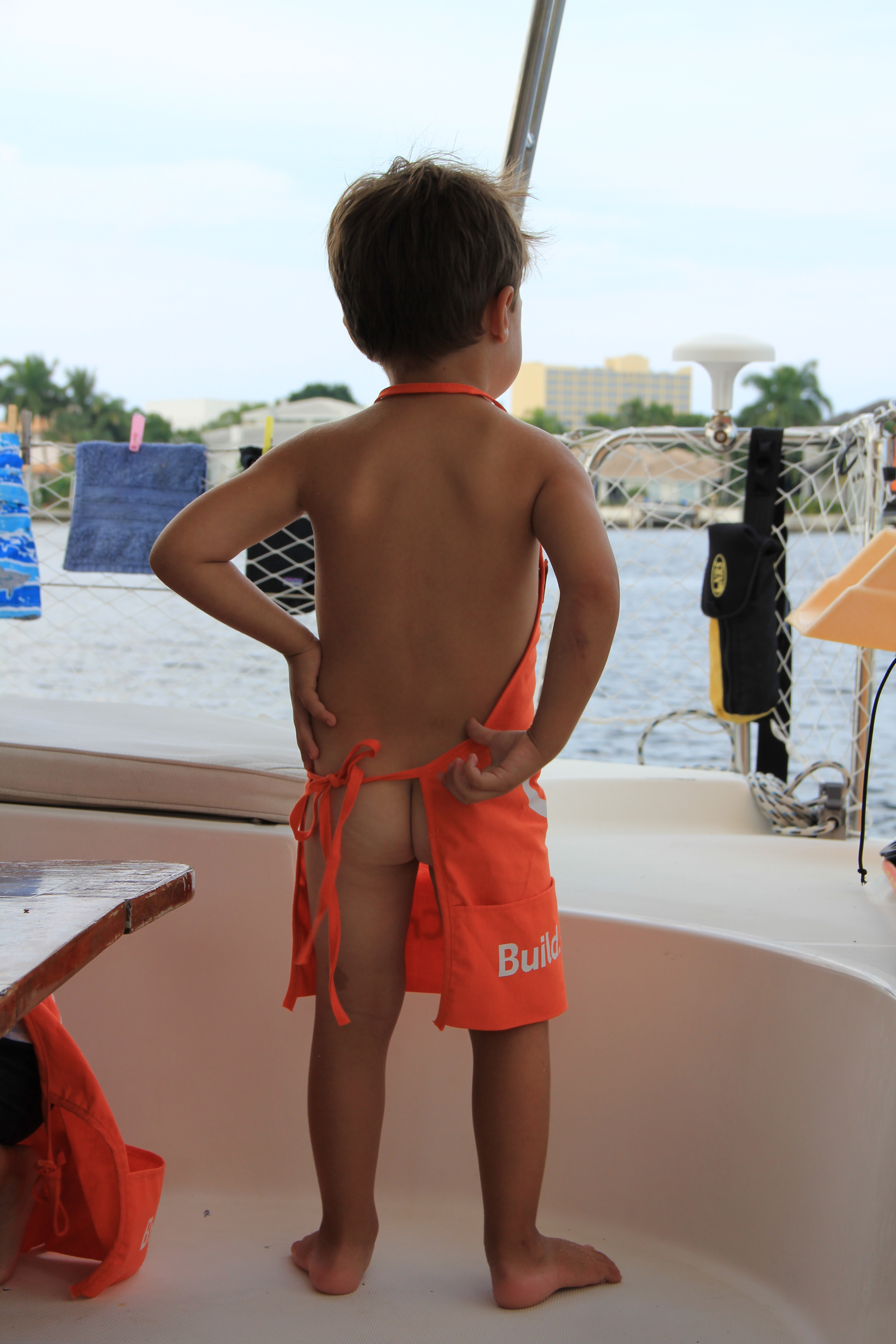 to a dock in the canals of Fort Lauderdale with swimming pool 20 yards away is a play palace for the kids. They first exclaimed upon seeing their rooms, “this room is huge!” Our preparations for life aboard had meant even smaller rooms in their minds than their slightly bigger than a full-size-bed room with 40 inches to the ceiling. When we first arrived I set up some HeroCams in some of the rooms to record the kids’ reactions to the boat. Apparently, Chase disappeared for 20 seconds down below without our knowledge. He made it to Ella’s room, took a right into the bathroom and straight for the toilet. At 3 years old, his little butt cheeks twinkle as he stands and pees, flushes the toilet, and joins the festivities without us knowing of his little venture. The cameras had us howling. Our little seaman has arrived. Chase is 100% in his element on Rivers2Seas. A child’s intuition can be astounding. They each know so much about boat life without us teaching them.
