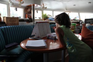 perfectly), although to a six-year-old, she without a doubt just moved a mountain. One of her lessons the other day was to talk about animals in their ocean environment, instead of reading the science textbook and cutting out pictures of fish and dolphins, we donned a mask and snorkel, walked off the back of our boat and stuck our heads in the water and looked for manatees, fish and anything else we could see. Instead of sitting in a classroom and reading a glossy paged book, she is feeling, touching, breathing, and drinking her education.