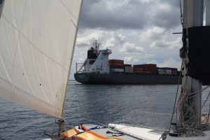 Brad has been working on the boat. A new navigation station with Air speed, direction, barometer, water speed, speed over land, bring the boat up to date with her electronics. Hours of work on the heads has resulted in many new parts and some horrendous “groover” stories. Almost every piece of trim on the boat has been removed to get behind at the bowels of our ship. Here the maze of wires truly astounds as so many systems entangle themselves. It’s like having all the wiring of a car and house together. A new boom attaches to the