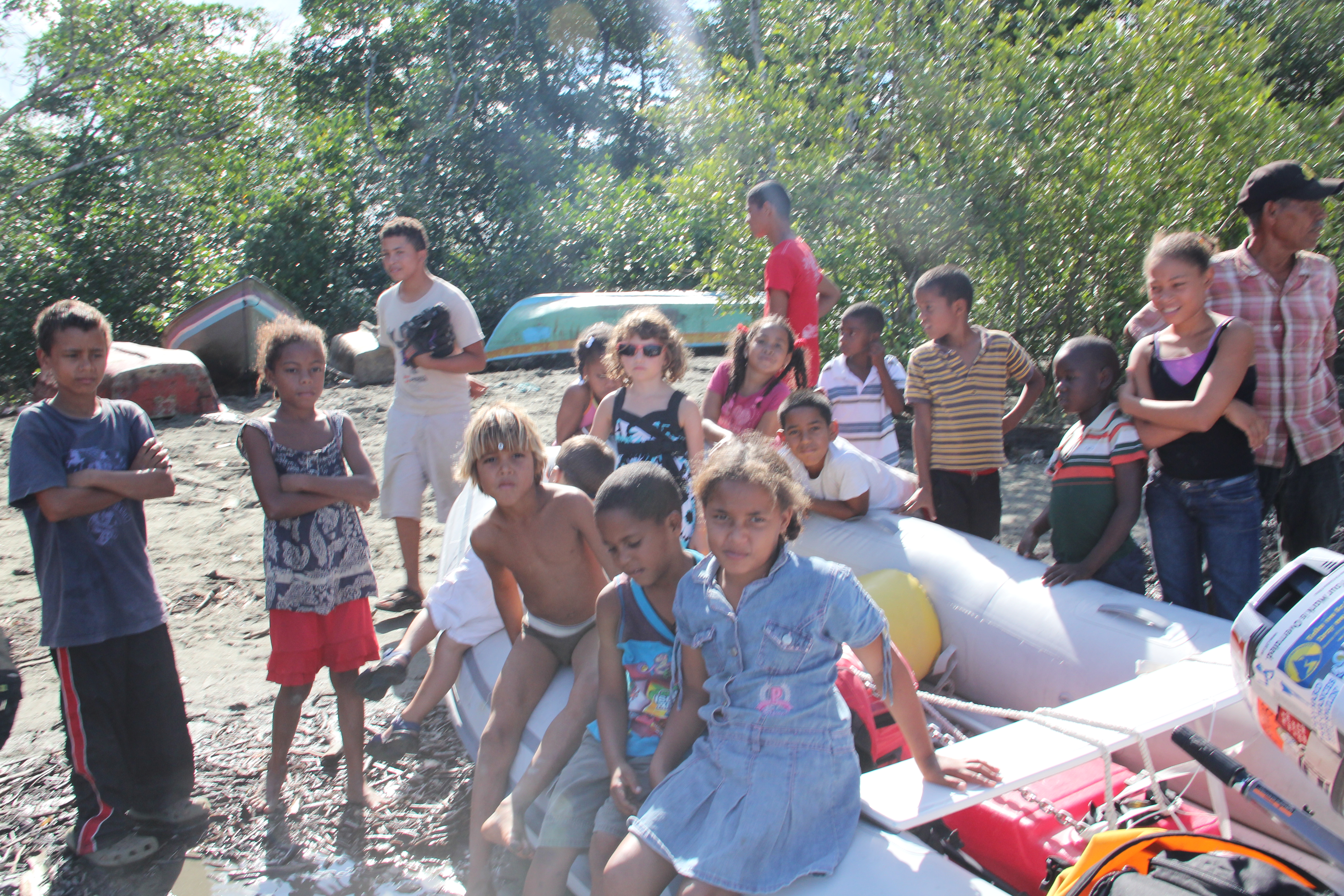 each other. We took a family snorkel to a little reef, but jellyfish drove us back. New Years Eve was spent marveling at the vastness of the Milky Way. The next day we wandered into town to find some lunch. Everything was closed so we played at the town park. A man, Fernando, was talking to us and then ran off to get the bar owner to open. We had a couple of Kalik beers while watching the Miami Dolphins play the NY Jets in a New Year’s Day football game. Having not watched TV in over two months, the whole experience was surreal. Chase and Ella played dominoes while we chatted with locals and watched football. When the owner had some food delivered we asked where he got the takeout. Keep in mind this is a town of 200 people. It was from his sister across the street. Knowing food was not going to be an option we paid our bill and headed down the street. One of the bar patrons stopped on his bicycle to say we left too early, “his momma was making us food.” Immediately, we headed back to the bar. Four heaping plates of fresh turkey topped with cranberry sauce, potato salad, real macaroni and cheese and corn filled out bellies. All payment was refused.