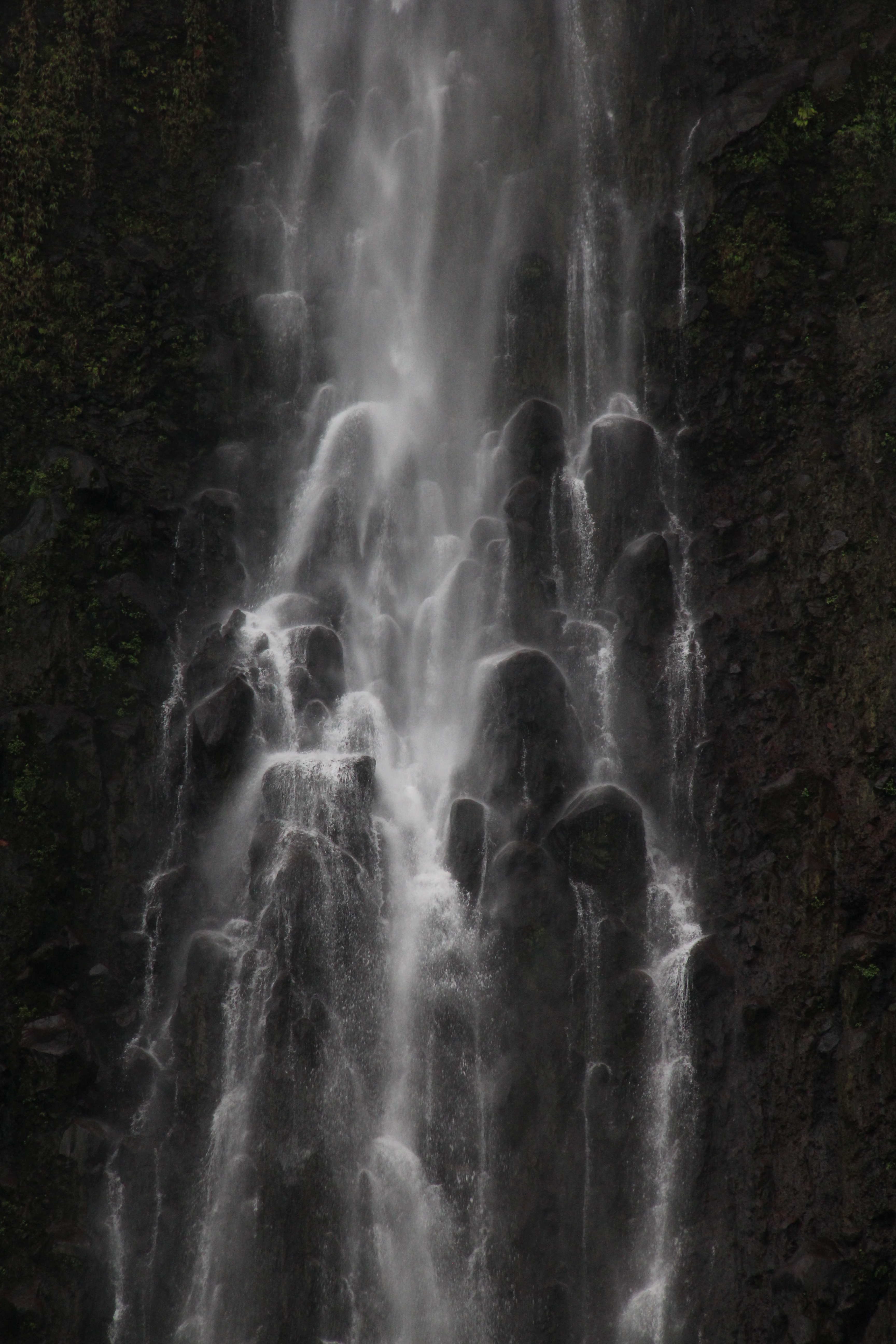 Basse Terre is also the name of the capitol of Guadaloupe as well (not just that side of the archipelago).  We anchored there (after SEVERAL annoying attemps at anchoring) and got ready to check out of the country and say goodbye to Twilight Rodeo as they were picking up some family and exploring the island for a couple more weeks.  Before checking out, we had heard that there were some spectacular waterfalls that “you must not miss” called Chutes de Carbet.  Always ones to see and do anything that has to do with rivers, we happily set off on this adventure.  We wanted to get a little more of the culture and people of the island so instead of renting a car, we chose to jump on the local bus (and with lots of gesturing and apologizing) we found the one that was definitely going there so we hopped on and high-fived at what great travelers we were.  The bus dumped us on at the junction of two roads and the bus driver pointed to the sign that said “Chutes De Carbet” that way……We started up the road and after about 20 meters there was a little tiny side-of-the-road eatery.  Brad suggested we eat there and I protested as it was only 10:15, the waterfall is right there (we were told it was a 20 minute walk to them) and we will be back in time after working up an appetite.  After realizing that our snack situation was a little dismal, we decided we could eat before and after.  We sat down for the most amazing chicken sandwich I’ve had since we’ve been travelling.  It was incredible.  We gobbled it up, asked the Madam about how far to the waterfall and if there were taxis going often just in case we got tired of the walk.  We were assured there were definitely taxis.  Just stand there and one will be by.  After standing for about 20 minutes in the stifling sun (no wind since we are inland), I walked back down to the restaurant as it was in the middle of a banana plantation, and inquired about buying a stalk of bananas.  She laughed and told me I could have as many as I wanted.  I pointed to Chase and said he eats a lot!  She shrugged and pulled about 30 from behind the counter….free.  I said great, we will be back to get them after our walk.  She sun umbrella - islands stylesmiled and said no problem (I think as this whole thing was in French).  I went back to my spot and waited for some taxis.  Another sweltering 20 minutes and a man came by in a beat-up Toyota-type truck (French version whatever that is) and we climbed in back (including the kids!! Sorry mom;) and rode for what felt like forever.  We got to a little village where the man kept apologizing and saying he was going a different way from the waterfall at that point and couldn’t take us any farther.  We thanked him for his generosity and thought that they MUST be just around the corner.  Brad and I have always found, throughout all of our travels, that people exaggerate and most places that “there is no way you can walk there” is right around the corner and we barely, if at all, break a sweat getting to whatever place it is.  That includes being with the kids.  We set off up the road.  After 30 seconds of walking a women came to a screeching halt in front of us and implored us to stop and turn around.  “It is very far, no way can you make it, with kids too!! No Way Turn around GO BACK!!”  We smiled graciously, and knowingly, and continued on our path.  What insued was the biggest slog fest, parents-apologizing-and-promising-kids-whatever-they-want painful, cry-provoking (of both kids and adults).  Several cars went flying past us (no taxis mind you) most were full of people and therefore could not take a pooped family of four.  We kept going, and going and going.  It was brutal (and straight up).  Chase and Ella were near mutiny and if we weren’t being their mules, they probably would have caught whatever car was going the other way but since they were riding on our shoulders, they couldn’t flag anyone down.   5.5 km later we got to the top of a hill and a couple with an old landcruiser came up over the top and saw Chase laying across the road in determined protest.  They stopped and said our car is a mess in the back, no room.  We said we didn’t care and climbed in.  They asked where we had come from and we told them where we had left the bus.  With looks flying between the two of them, they got really quiet.  After another half of a mile, they turned around a round-a-bout and said there you go.. WHA????? Here is the entrance to the START of the walk to the waterfall…..I looked at Brad with a “let’s catch the first car leaving NOW!!) and he said we made it this far…we are seeing the waterfall.  Chase and Ella seemed doomed to their fate and with nary a complaint, they followed us down the trail to the falls.  It was very Rocky Mountain National Park-esque with lots of signs and perfectly built stairs until we arrived at the falls.  They were beautiful.  We took one more look and headed back down.