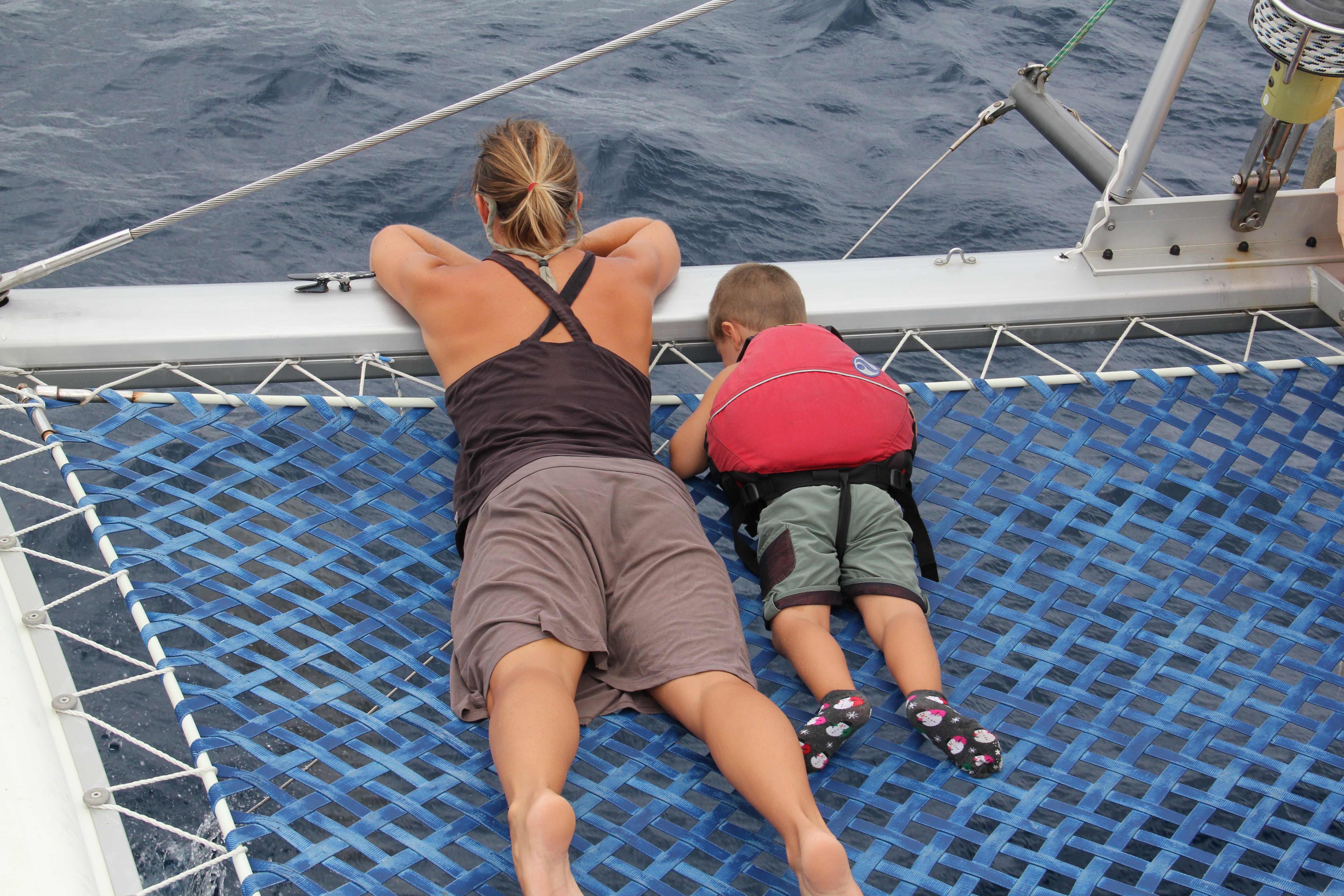 We spend our time reading, napping and telling stories to the kids. The kids play innumerable imaginary games as we bounce down the seas. My favorite is when Ella sets up a desk and starts selling raft trips. I’ll take a hundred people please! Going to bed, the kids ask for another “Daddy story.” I give them one of my newest titled, “Don’t chum the waters,” which sends them into hysterics. They keep interjecting their own thoughts and views; the laughter is loud and boisterous. Lindsey calls me out to check the sails, so I do some adjustments and by the time I return Chase is fast asleep and Ella is telling me to turn off my light. A minute and a half ago we were all rolling in giggles. Even on the little crew passages are tiring.