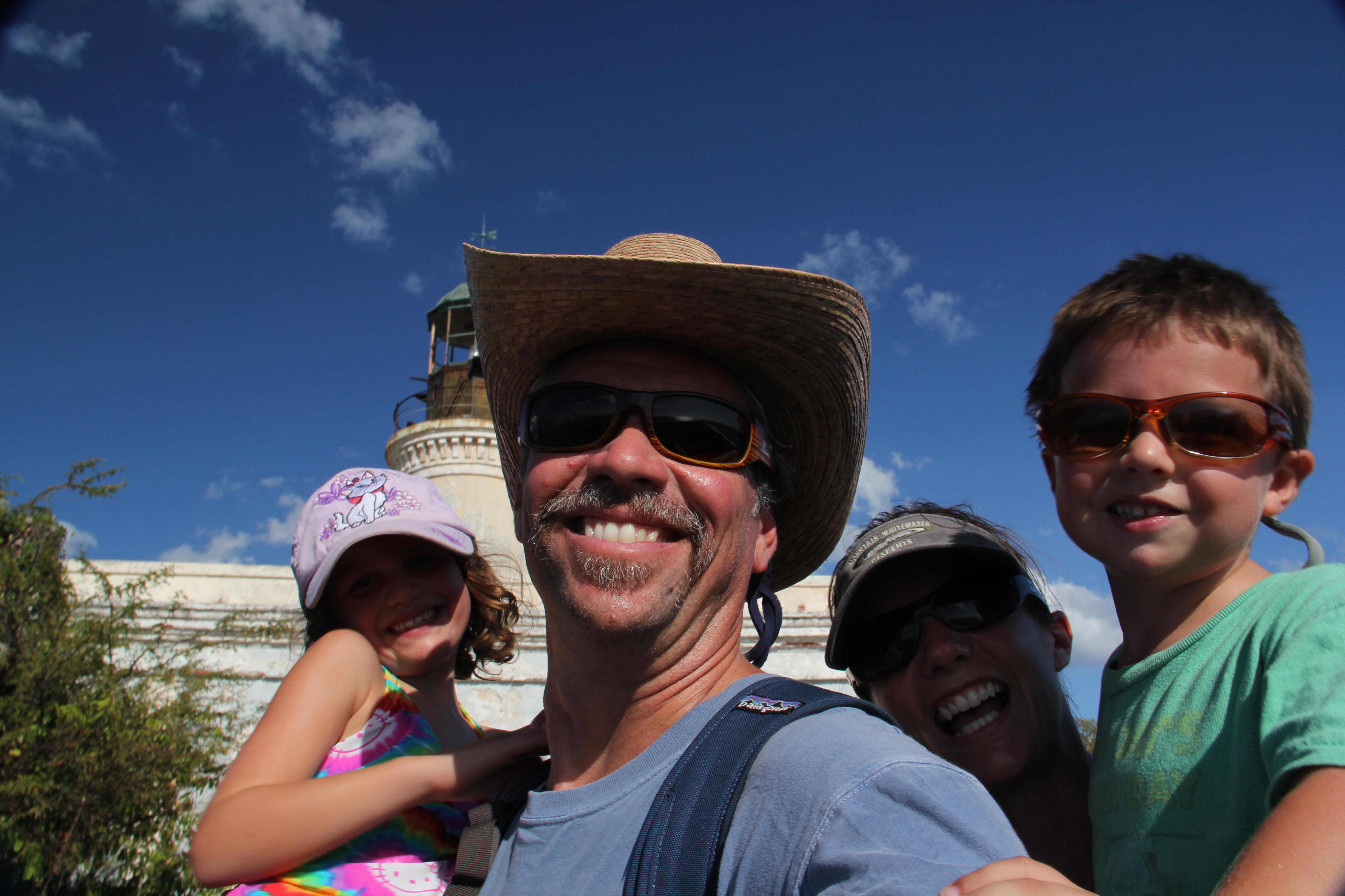 lizards scurrying about, fit in well with Ella’s habitat lesson. From the top we toured the lighthouse, gave a lesson on navigation, windward and leeward shores while watching Rivers2Seas floating tranquilly far below. Most hikes we rarely get glimpses of our home, the foliage being too thick to see much of a vista. Lighthouses by their very nature of signaling to mariners where a headland or island is located have become desired hikes for all of us because of these great viewing areas.