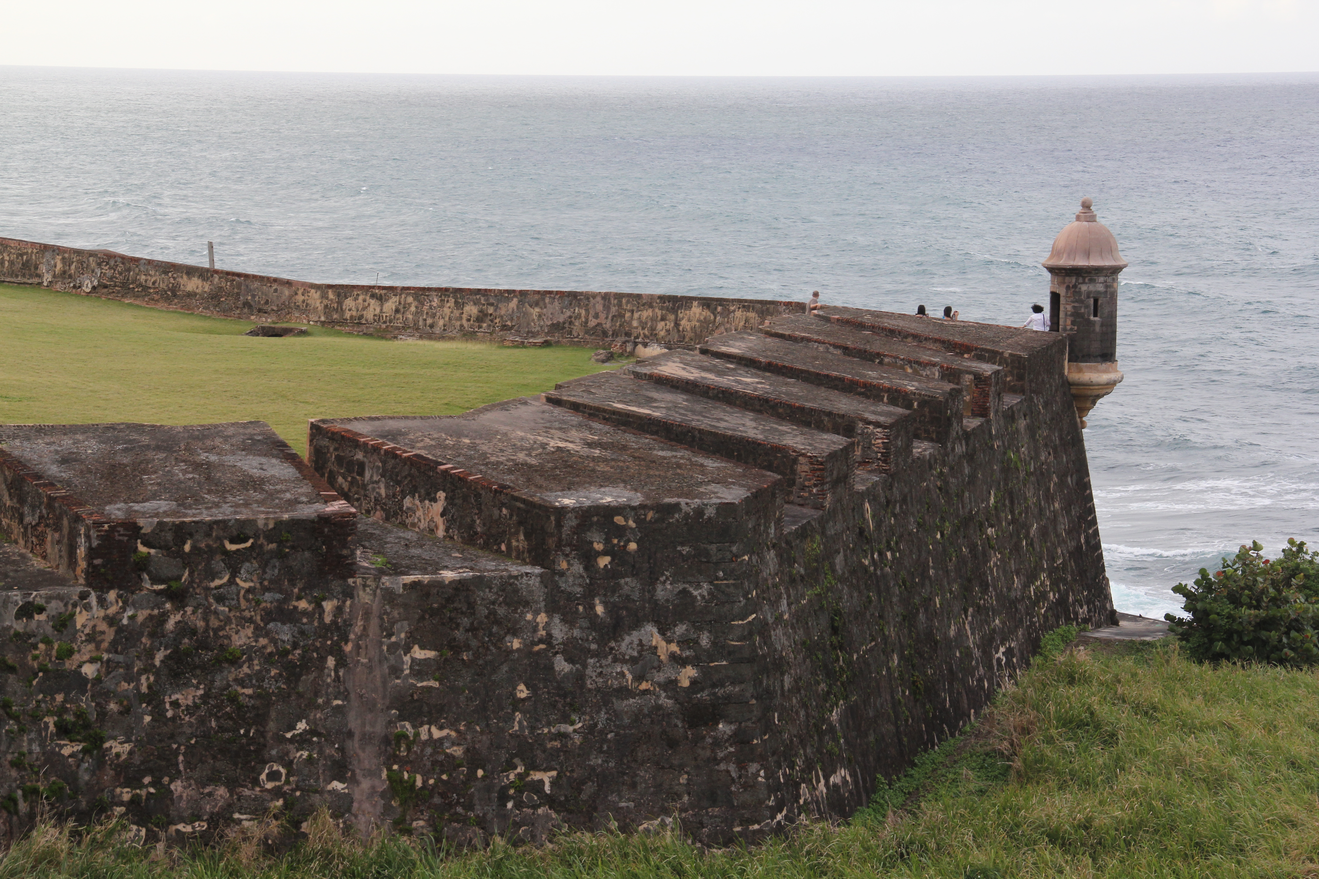 forts with thousands of other cruise boat tourists. Cool forts but the people all seemed fat and pink. We wondered what all the locals thought of the pink tourists. The Puerto Ricans were all dressed to impress with the shoes being a focal point. Our water sandals did not pass muster. A fantastic sushi dinner on the main walkway while sipping a Medalla beer let us people watch.